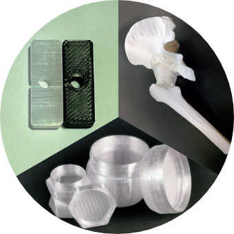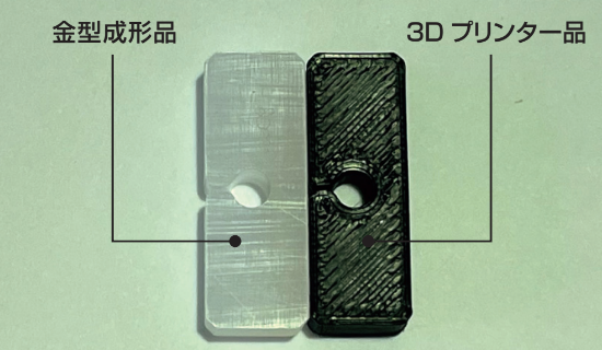 ロットが少量であり、金型投資に対しての償却が困難であったため、ポリ乳酸(PLA)で簡易的に型を作成し、常温硬化型シリコーンゴムを充填し硬化させる方法でご提案を行いました。