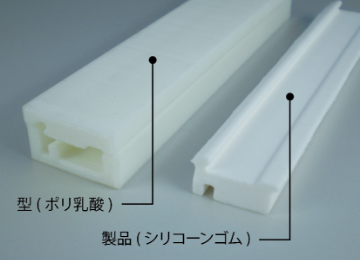 材質:型⇒ポリ乳酸(PLA)、製品⇒シリコーンゴム