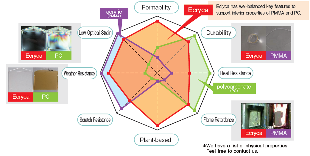 Moreover, while polycarbonate tends to undergo yellowing due to weather exposure, Durabio exhibits minimal yellowing and proves more effective for products meant for long-term outdoor use. Being plant-derived (BPA-free), it allows for environmentally friendly product fabrication and boasts durability as it is not a biodegradable polymer.