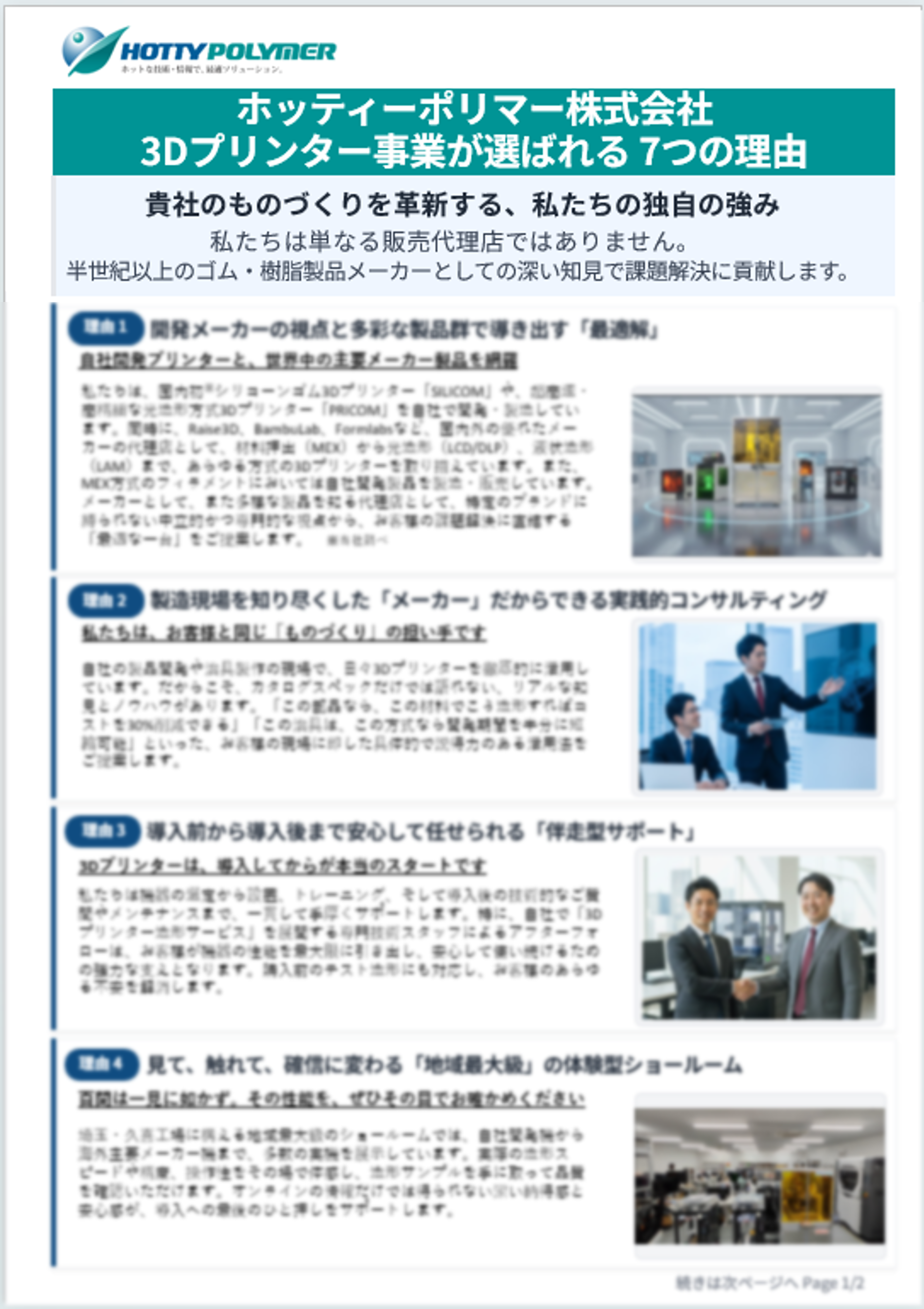 ■「ホッティーポリマー3Dプリンター事業が選ばれる 7つの理由」