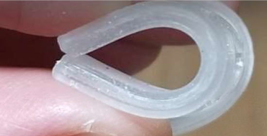 曲げ弾性率と高伸度、高復元性を有しており、エラスチックな性質を示します。(ゴム硬度50A)