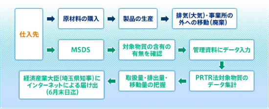 1999年(平成11年)7月に制定されたPRTR法「特定化学物質の環境への排出量の把握等及び管理の改善の促進に関する法律(化学物質排出把握管理促進法)」に基づく届出を行っています。